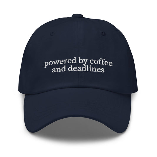 Powered by Caffeine & Deadlines Hat - Funny Office Cap - Embroidered - Multiple Colors