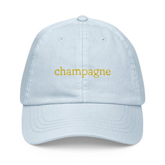 Champagne Hat - Gift for French Wine Lovers - Pastel Cotton Embroidered Cap