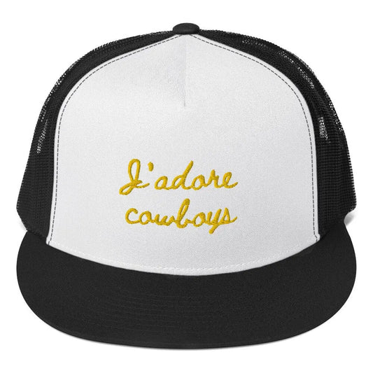I love Cowboys Trucker Hat - French Translation - J'adore Cowboys - Embroidered Custom Mesh Trucker Cap