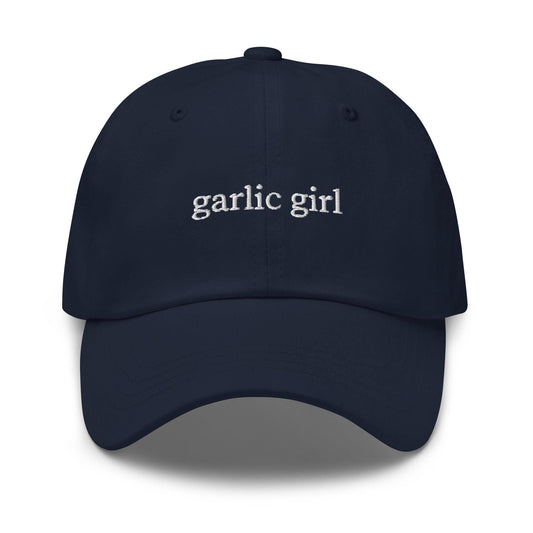 Garlic Girl Dad Hat – Embroidered Serif Font Cap for Food Lovers and Slow-Roasted Style