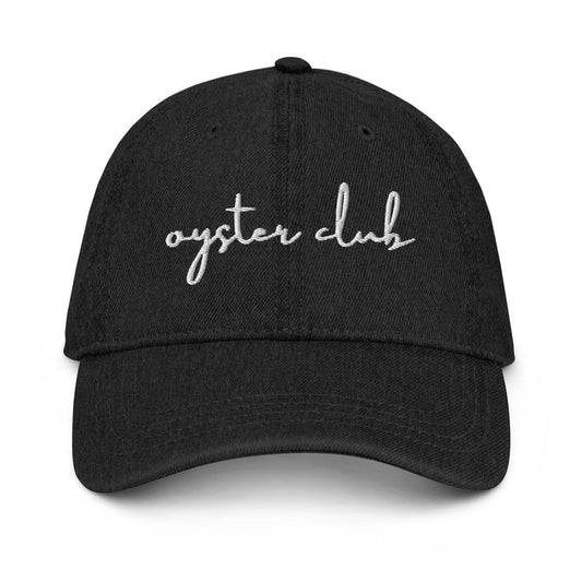 Oyster Club Denim Hat – Cursive Embroidered Dad Hat for Chic Coastal Girls and Foodies