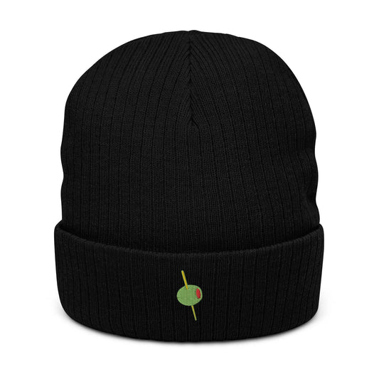 Olive Beanie - Manzanilla, Spanish, Pimento Stuffed Olive with Toothpick - Cotton Embroidered Hat