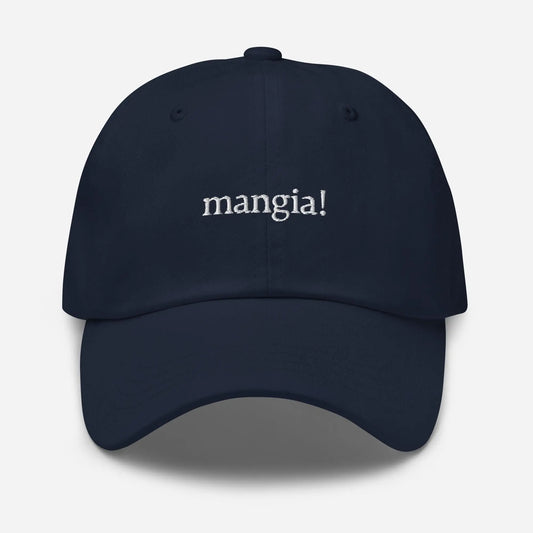 Mangia Hat - Italian Sayings - Eat - Gift for Italian Food Lovers - Cotton Embroidered Baseball Cap - Multiple Colors
